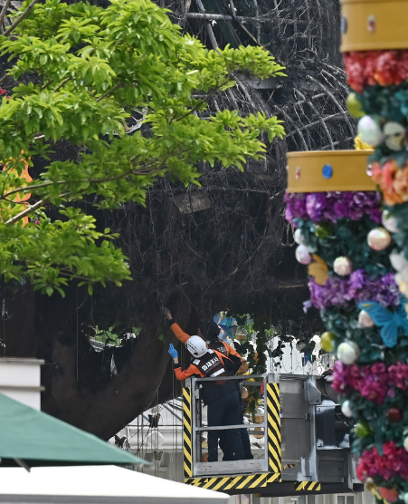 불은 매직트리의 맨 꼭대기에서 시작된 것으로 추정되며, 전기적 요인에 의한 화재로 추정됩니다.소방당국은 정확한 화재 원인을 조사하고 있습니다.