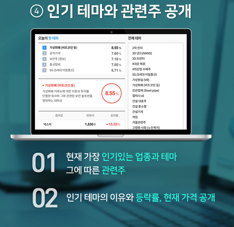 바른이 주식 자동매매 프로그램은 인기테마와 관련주도 함께 공개해주네요.