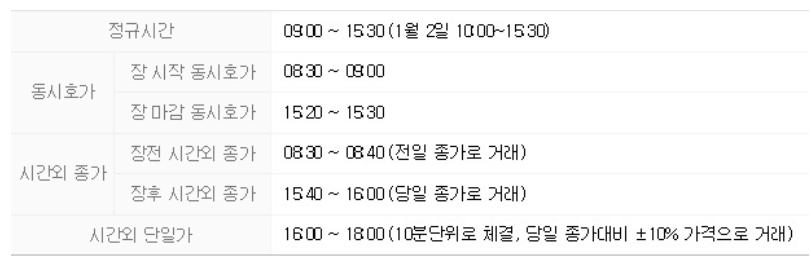 그건 바로 주식시장 시작 전과 주식시장 종료 후에 일정 시간 거래가 가능한 장전시간외거래 장후시간외거래를 이용하는 방법이예요.