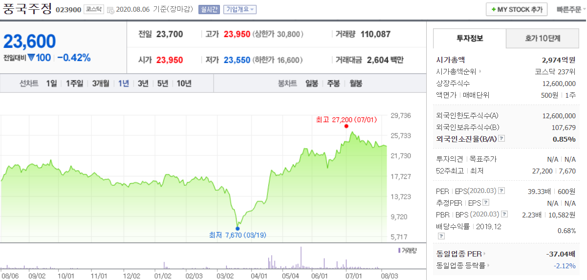 세 번째는 풍국주정입니다 풍국주정은 주정을 제조하는 회사입니다. 뜬금없이 술만드는 회사가 나오니까요. 하지만 에탄올을 생산하는 회사입니다. 국내 주정 시장 점유율 3위인 업체지죠.