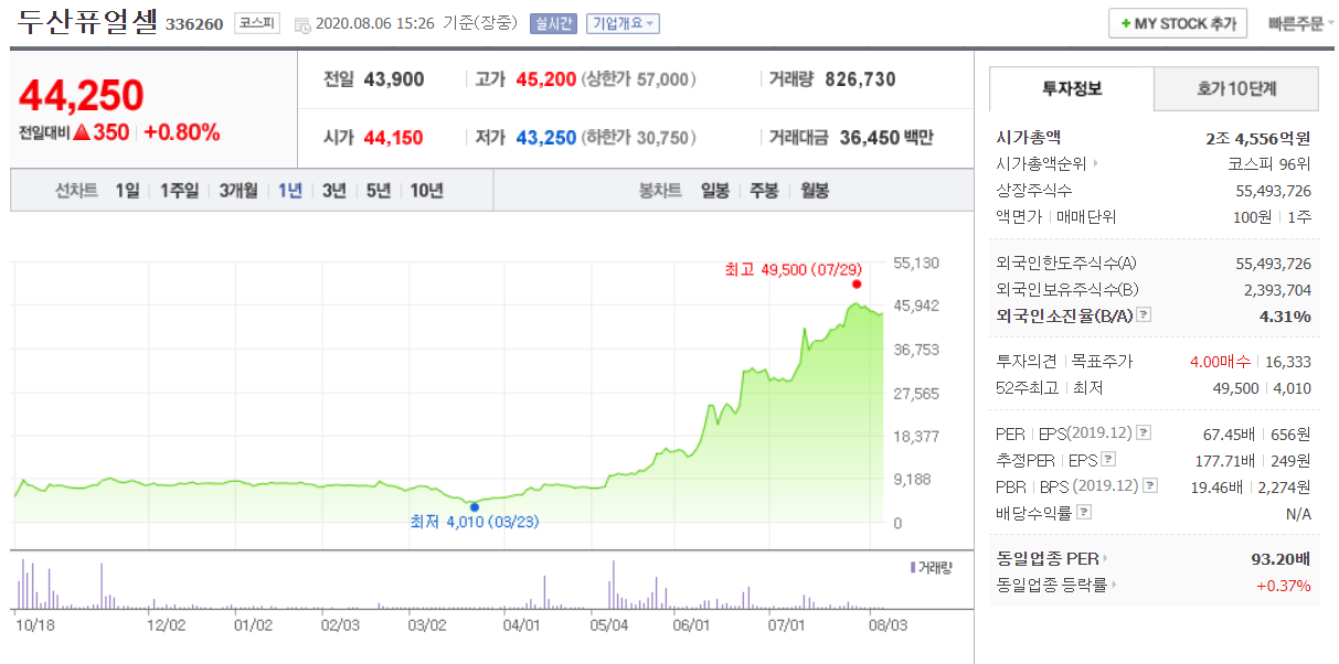 그러면 수소차 관련주 대장주는 어떤 주식일까요?1. 두산퓨얼셀