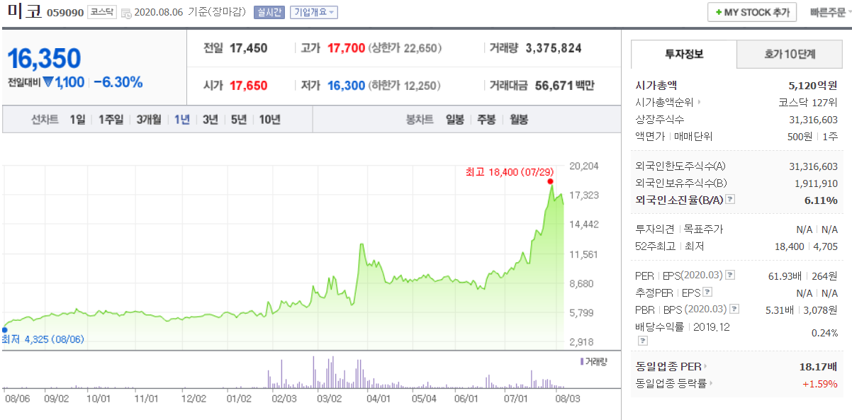 미코는 반도체와 디스플레이용 장비의 부품 등을 생산하는 기업으로 주력 제품으로는 히터, ESC 등이 있습니다. 반도체와 디스플레이 부문에서 세정과 코팅 관련 사업을 영위하고 있습니다. 반도체 업체지만 수소차와 관련이 있어요.